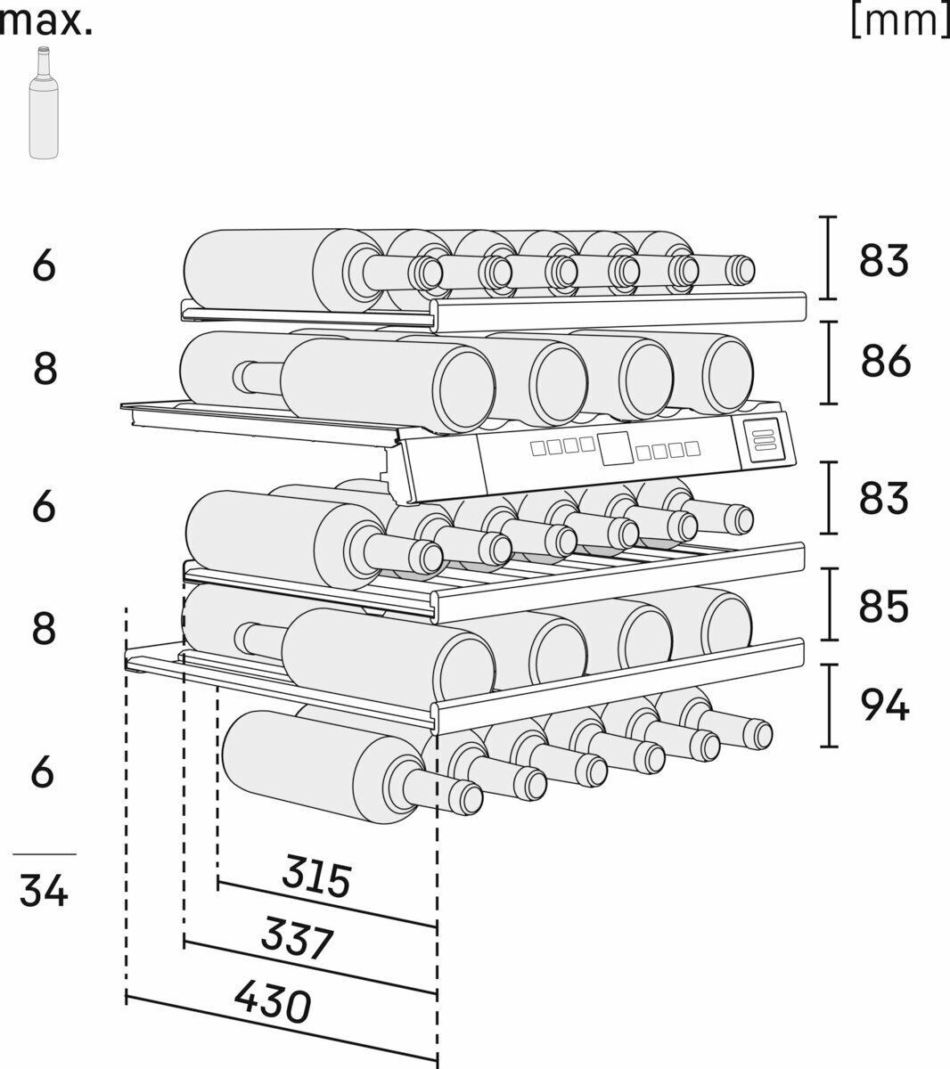 Built-in wine cabinet, 94l, 1-chamber, 60x58x82cm, silver