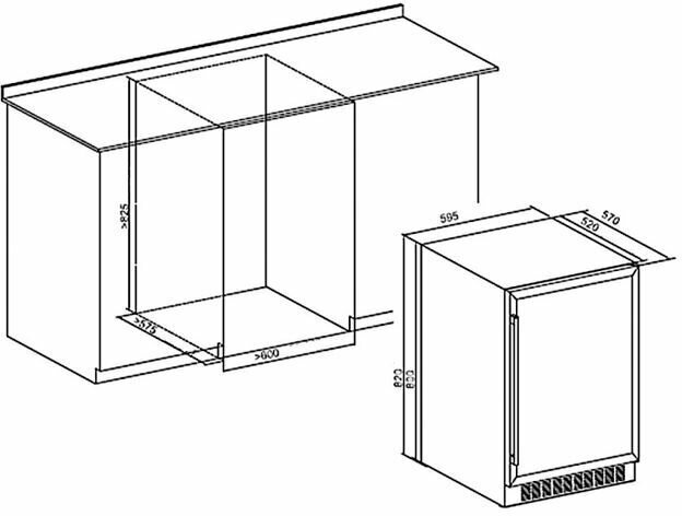 Built-in wine cabinet, 135l, 1-chamber, 59.5x61.3x82cm, black