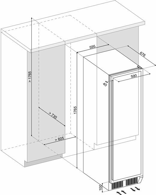 Built-in wine cabinet, 428l, 1-chamber, 59.5x68x177cm, black