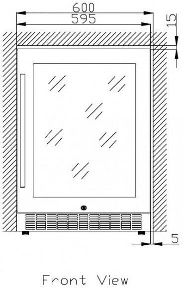 Built-in wine cabinet, 146l, 1-chamber, 59.5x56.2x82cm, black