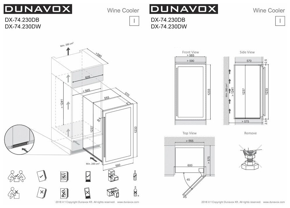 Built-in wine cabinet, 230l, 1-chamber, 55.5x57x123.7cm, black