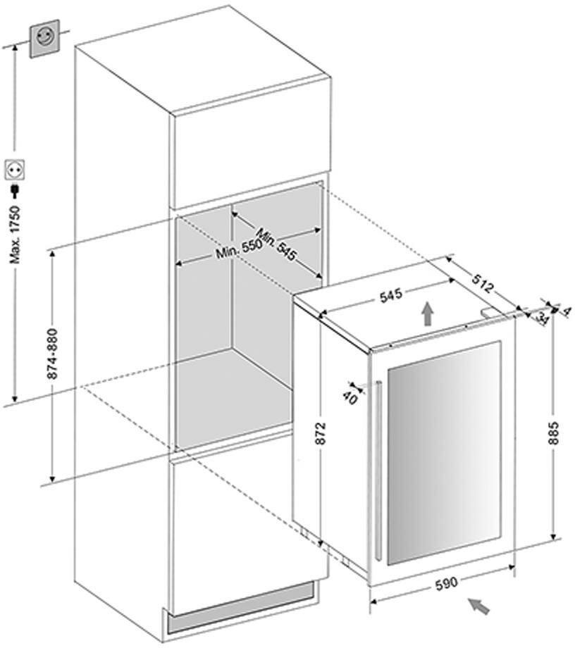 Built-in wine cabinet, 116l, 2-chamber, 59x55x88.5cm, silver
