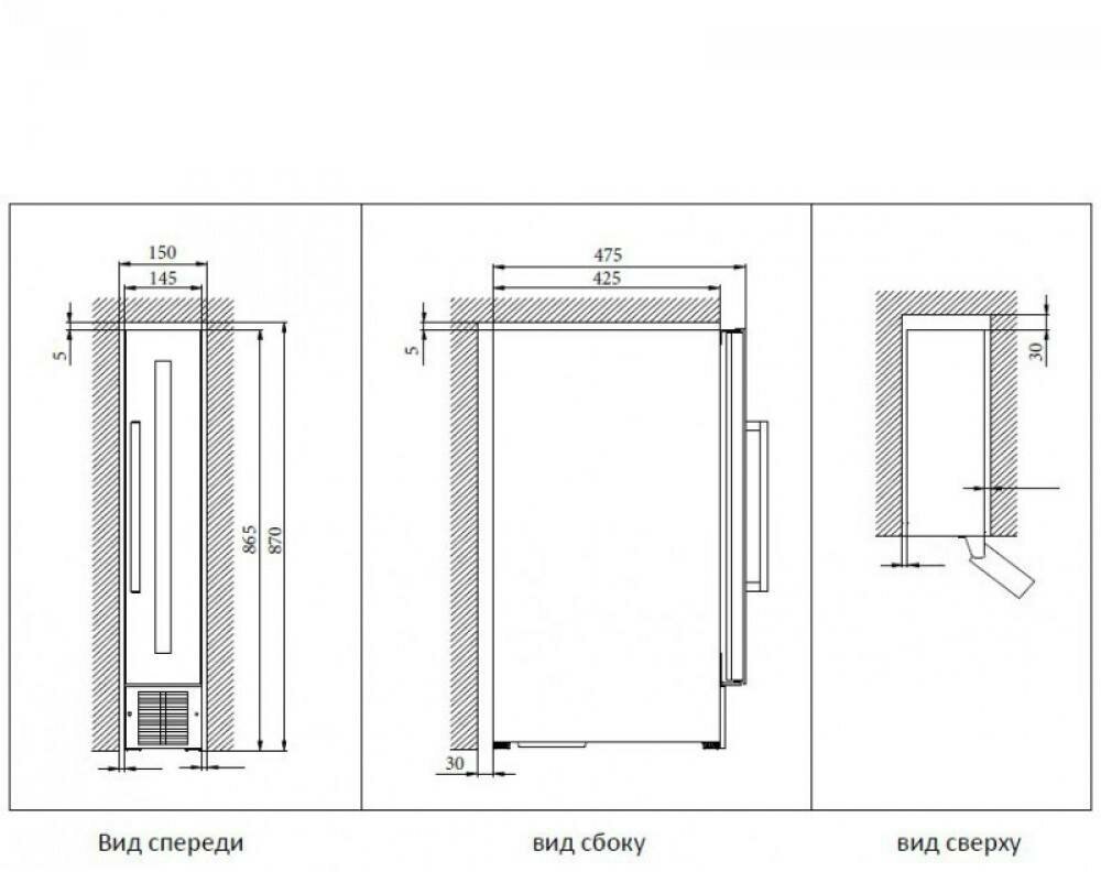 Built-in wine cabinet, 22l, 1-chamber, 14.5x42.5x86.5cm, black