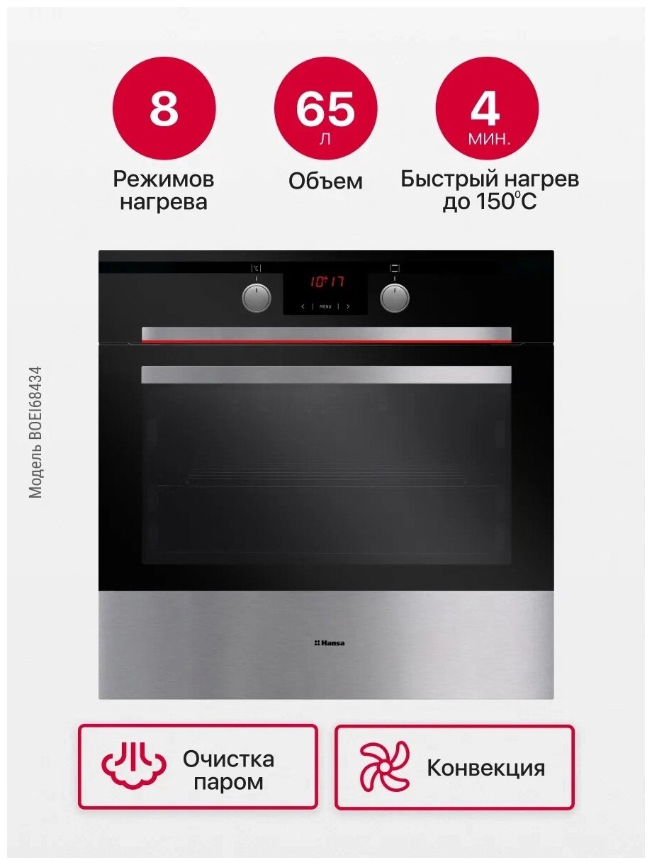 Oven type: electric, installation: independent, width: 59.50 cm, convection, grill, grill type: electric, oven cleaning: hydrolysis, oven volume: 65 l, number of oven door glasses: two, switches: turn