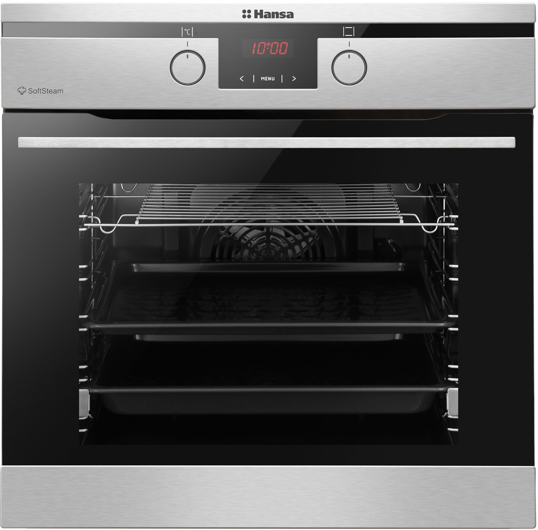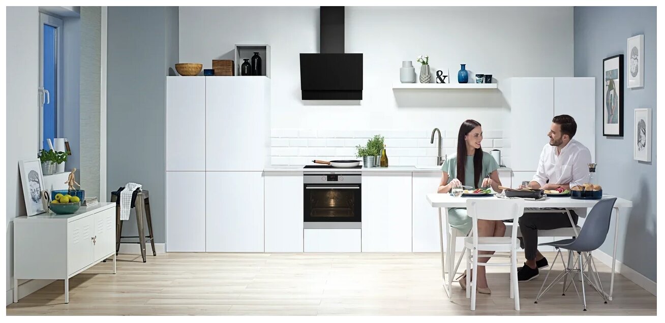 Door closer; recipes on the door; removable glass door; fingerprint protection; Baking Plus system; watch type: electronic; cooling Fan
