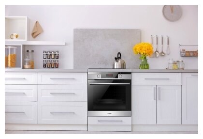 Oven type: electric, installation: independent, width: 59.50 cm, convection, grill, grill type: electric, oven cleaning: hydrolysis, oven volume: 77 l, number of oven door glasses: three, switches: turn