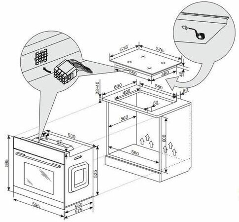 Description: Oven type: electric, installation: independent, width: 59.50 cm, convection, grill, grill type: electric, oven volume: 65 l, number of oven door glasses: two, switches: rotary, energy efficiency class