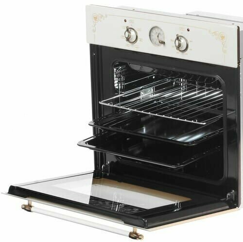 Color: cream with retro pattern; the design does not provide for cleaning the oven with steam; clock type: analog; cooling Fan