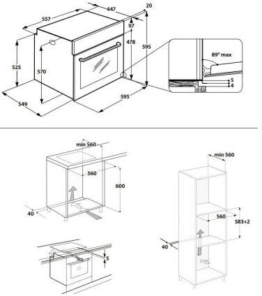 Oven type: electric, installation: independent, width: 59.50 cm, convection, grill, grill type: electric, oven volume: 67 l, number of oven door glasses: two, switches: rotary, energy efficiency class