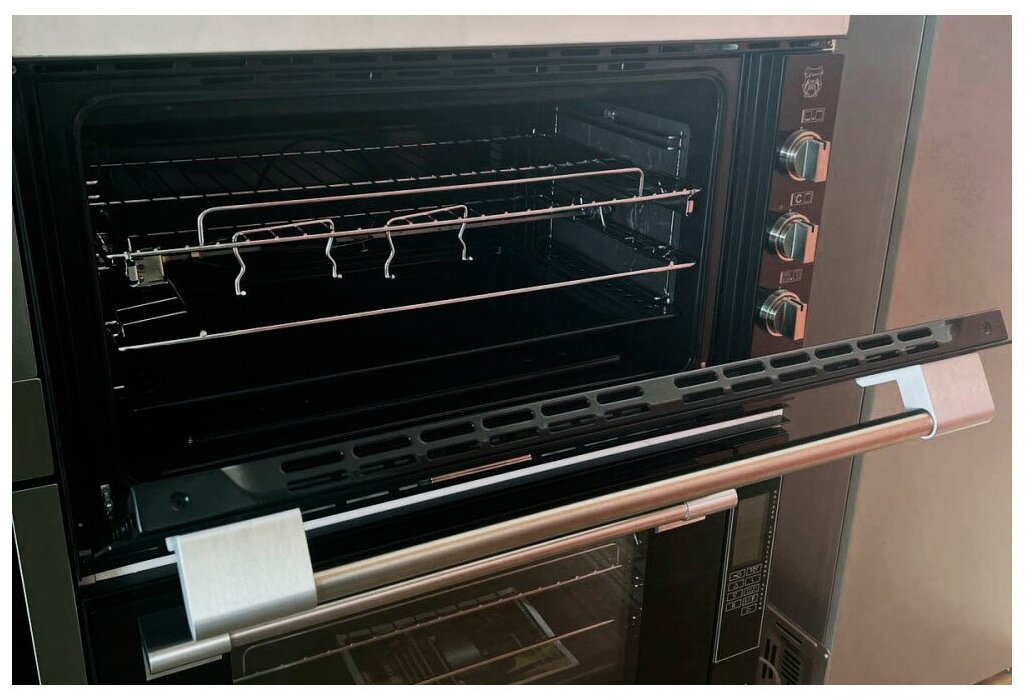 Multifunctional grid pcs 1 x chrome-plated Enamel non-stick baking trays pcs 1 x easy-to-clean anti-allergic enamel Tray grip pcs 1 x chrome-plated Rotisserie frame with fork and