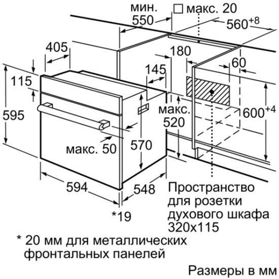 EasyClock electronic clock, cooling fan, acoustic switch-off timer, halogen lighting, recess dimensions HxWxD 585-595x560-568x550 mm, net weight 34.170 kg, oven door with opening-closing damper S