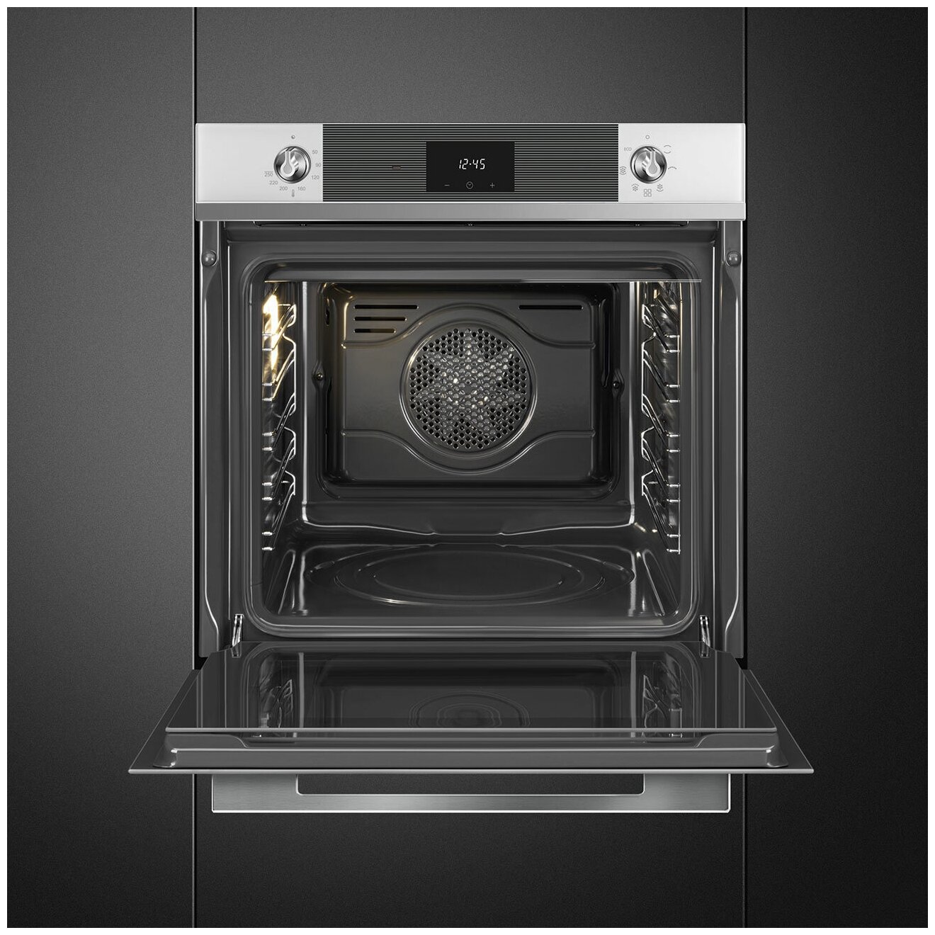 Large grill, top heat + bottom heat, grill + convection, convection, bottom heat + convection