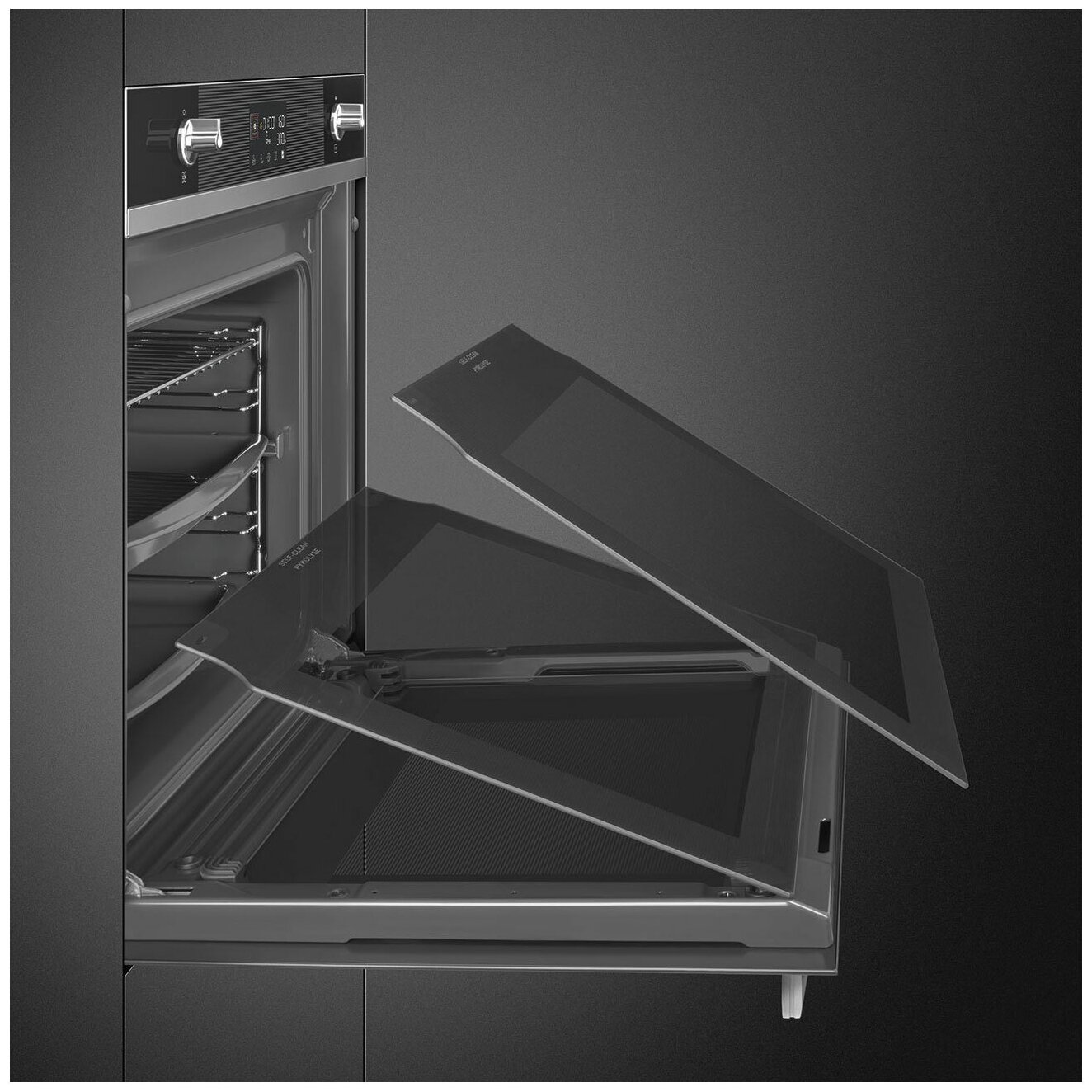 Quick heat up, defrost, timer, cooling fan, built-in steam generator, display, anti-fingerprint coating
