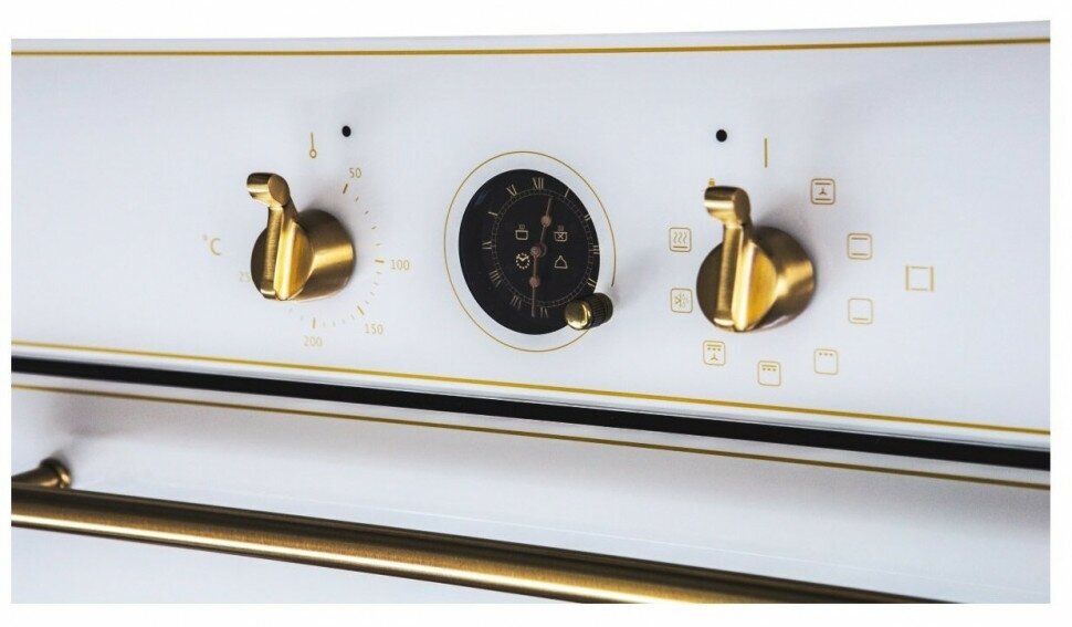 Clock type: analog; cooling Fan; timer type: sound with shutdown; hardware color: bronze; tray guides: chrome-plated, removable; removable oven door; removable inner glass