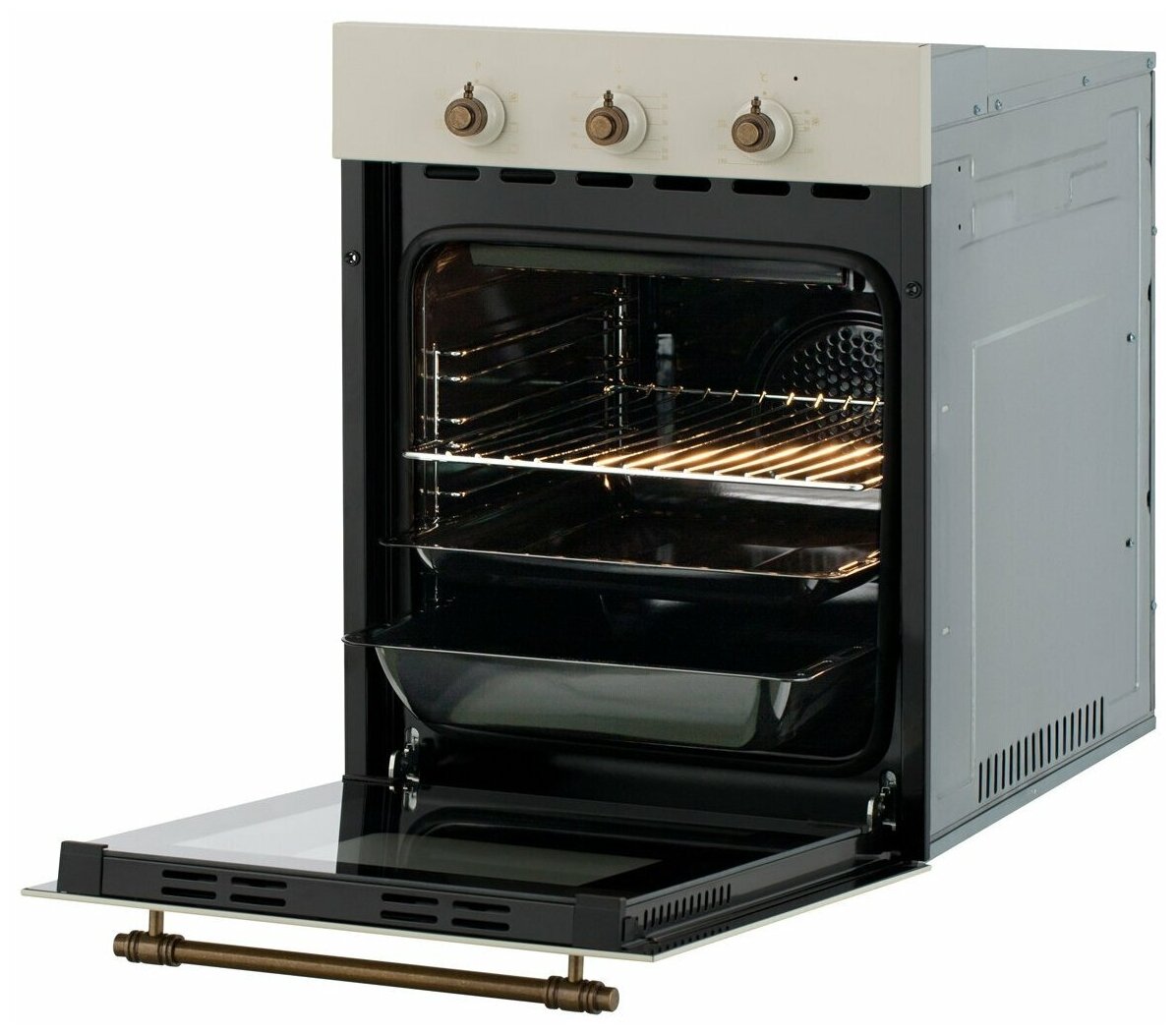 At the first start, we recommend heating the oven for 15 minutes at 200°C with a baking sheet filled with 300-400 g water to burn through the factory grease; supply voltage 220-240 V; cooling Fan; timer type: sound