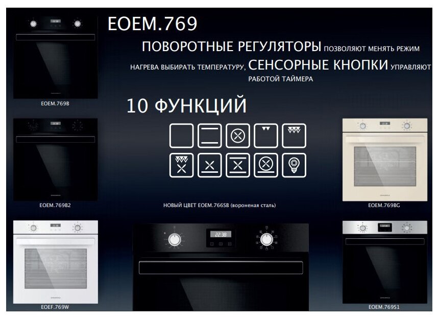 Oven type: electric, installation: independent, width: 59.50 cm, convection, grill, grill type: electric, oven cleaning: catalytic, oven volume: 76 l, number of oven door glasses: three, switches: turn