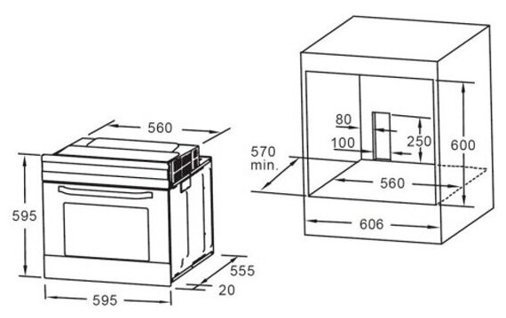 Detailed equipment: Built-in electric oven, user manual, warranty card, hardware, one rack, two baking sheets