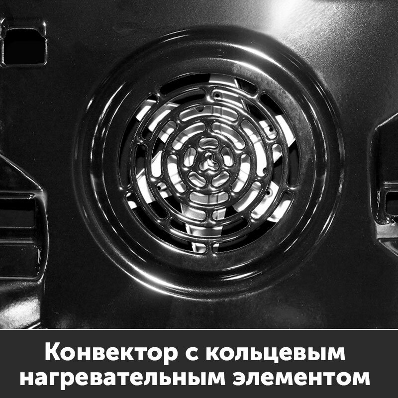 Large grill, top heat, top heat + bottom heat, grill + convection, convection, bottom heat, bottom heat + convection