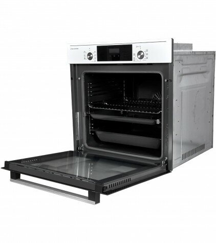 Oven type: electric, installation: independent, width: 59.50 cm, convection, grill, grill type: electric, oven cleaning: hydrolysis, oven volume: 80 l, number of oven door glasses: three, switches: turn