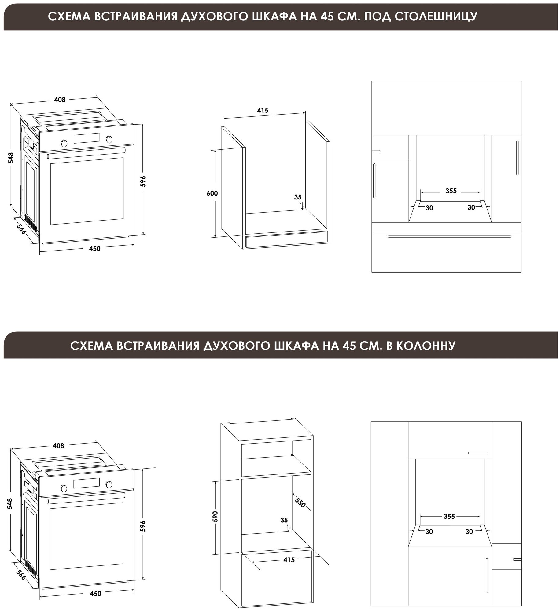 Additional Information: Top and bottom heating with convection, steam cleaning, niche size for embedding in a countertop HxWxD, mm: 600x415x550, niche size for embedding in a column HxWxD, mm: 590x415x550