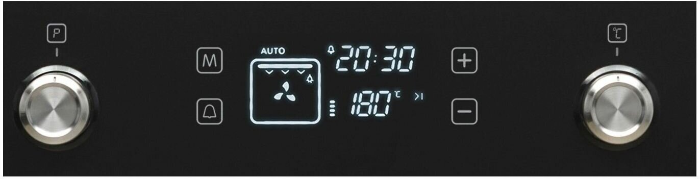 Large grill, top heat, top heat + bottom heat, grill + convection, convection, bottom heat, bottom heat + convection