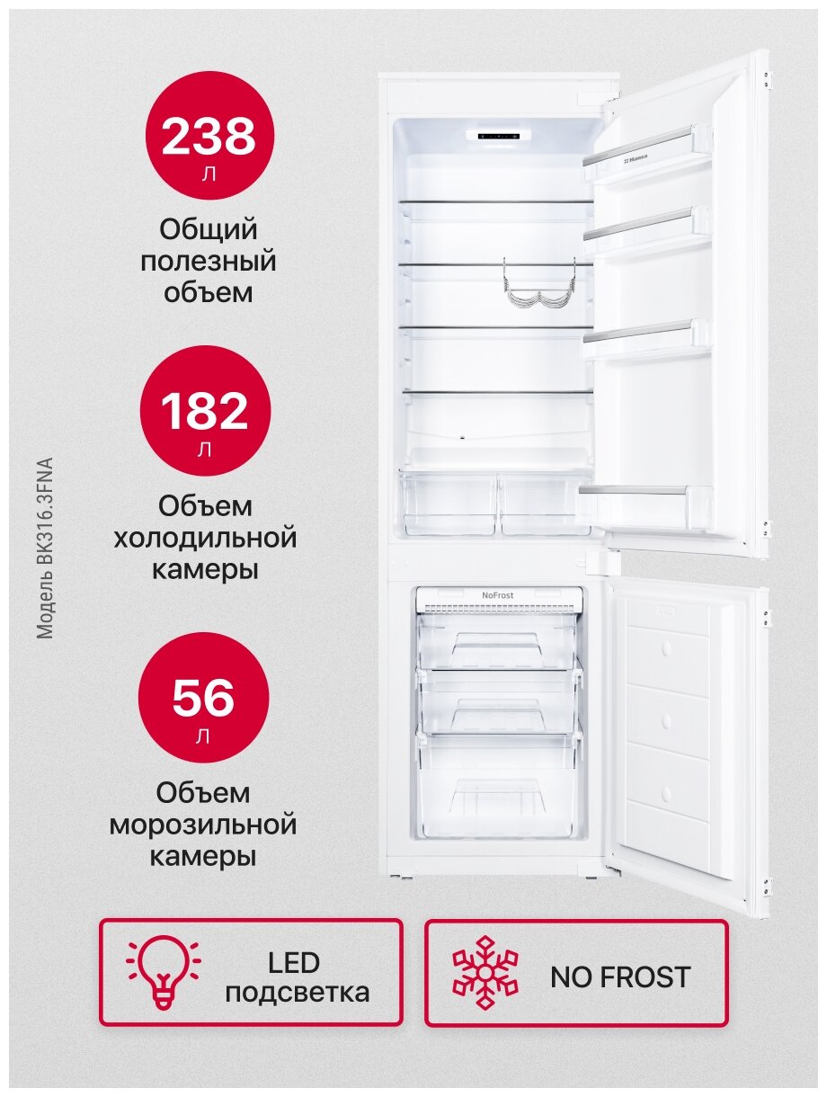 Freezer: bottom, freezer defrosting: No Frost, fridge defrosting: drip system, height: 177 cm, width: 54 cm, depth: 54 cm, number of compartments: 2, energy efficiency class: A+, comp type