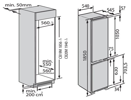 Freezer: bottom, freezer defrosting: manual, refrigerator defrosting: drip system, height: 185 cm, width: 54 cm, depth: 54.50 cm, number of compartments: 2, energy class: A++, type