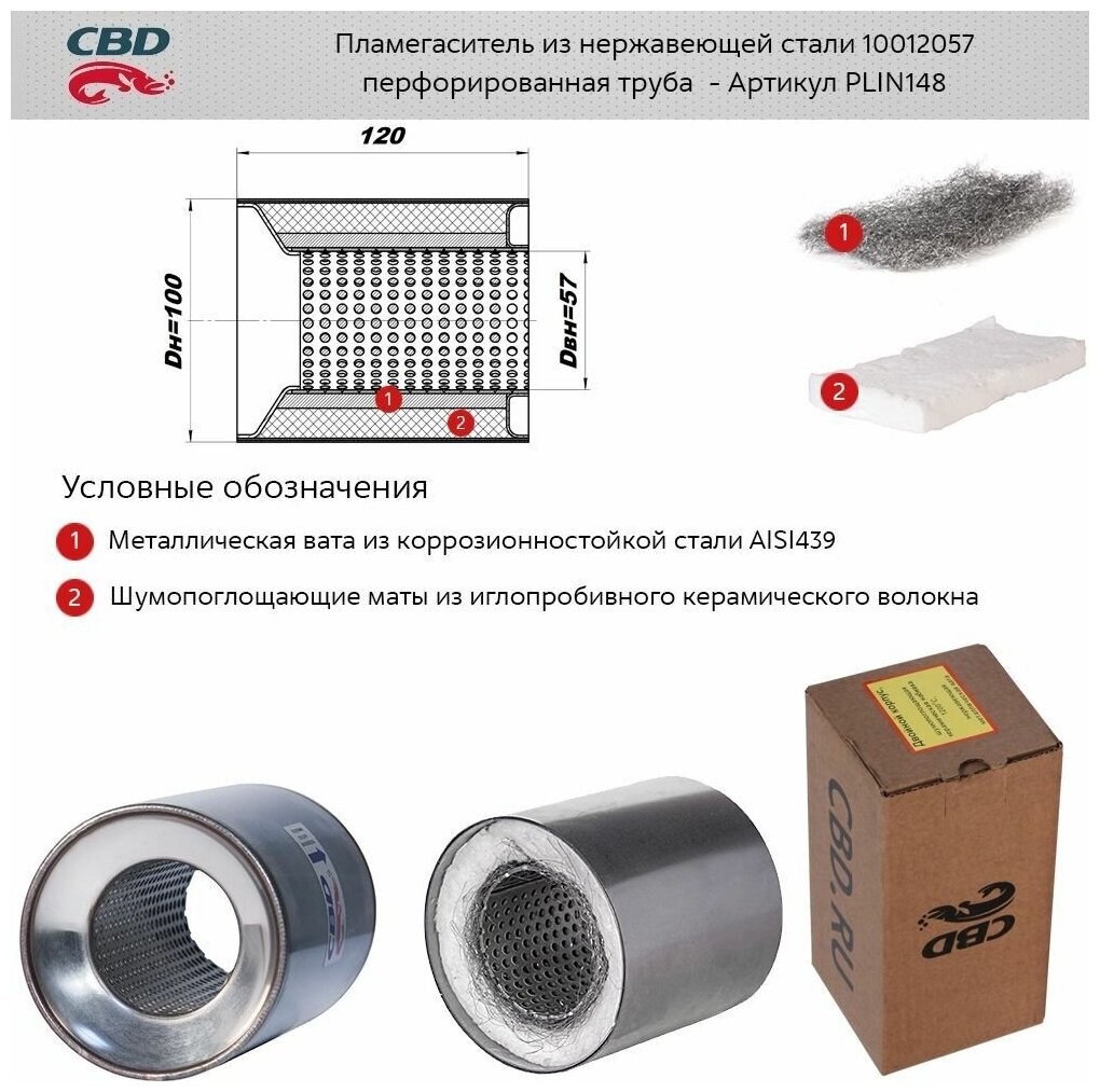 Type: collector flame arrester, material: stainless steel, length: 120 mm, diameter: 100 mm, diameter 2: 55 mm, vehicle type: buses, trucks, cars