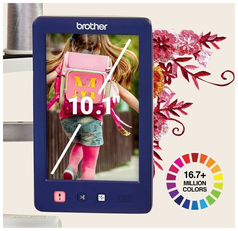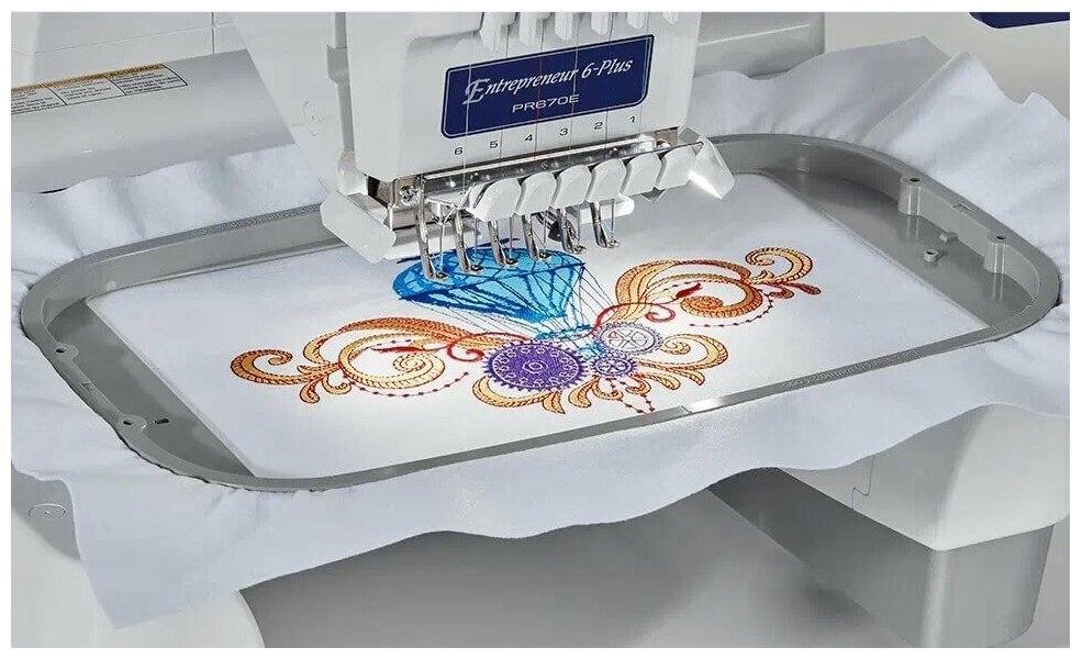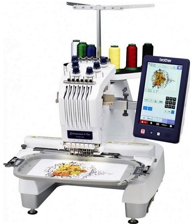Hook: rotary vertical, power: 50 W, speed adjustment: smooth, foot pressure adjustment, display: monochrome touch, PC control, USB port, maximum embroidery speed: 650 ties/hour, quantity