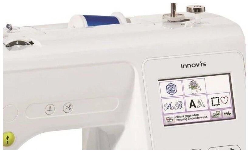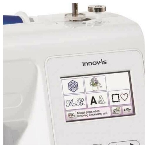Hook: rotary horizontal, power: 60 W, display: touch color, USB port, maximum stitch length: 5 mm, maximum stitch width: 7 mm, maximum embroidery speed: 400 ties/hour, cover: soft, length