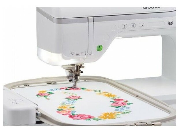 Power: 80 W, display: touch color, PC control, USB port, maximum stitch length: 5 mm, maximum stitch width: 7 mm, maximum embroidery speed: 1050 ties/hour, number of sewing operations: 727 pieces, th