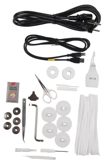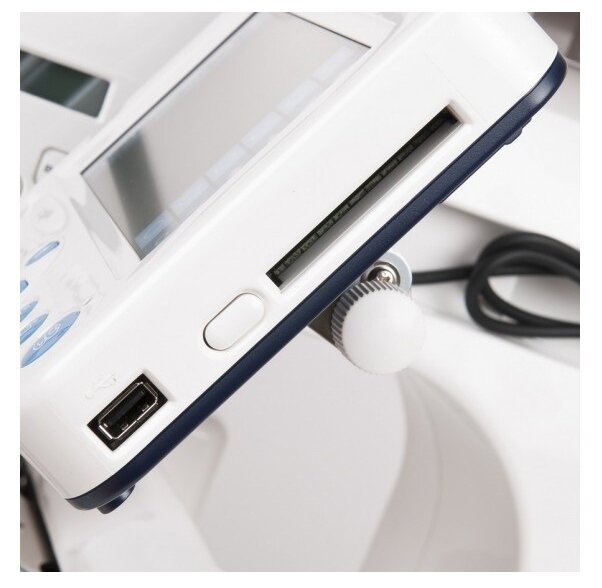 Hook: rotary vertical, power: 50 W, speed adjustment: smooth, foot pressure adjustment, display: monochrome touch, PC control, USB port, maximum embroidery speed: 650 ties/hour, quantity