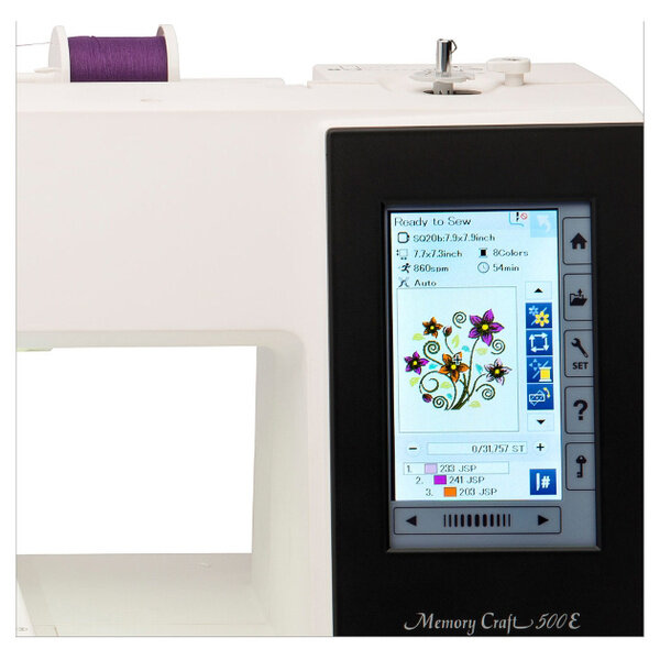 Additional Information: Hook: rotary vertical, power: 50 W, speed adjustment: smooth, foot pressure adjustment, display: monochrome touch, PC control, USB port, maximum embroidery speed: 650 ties/hour, quantity