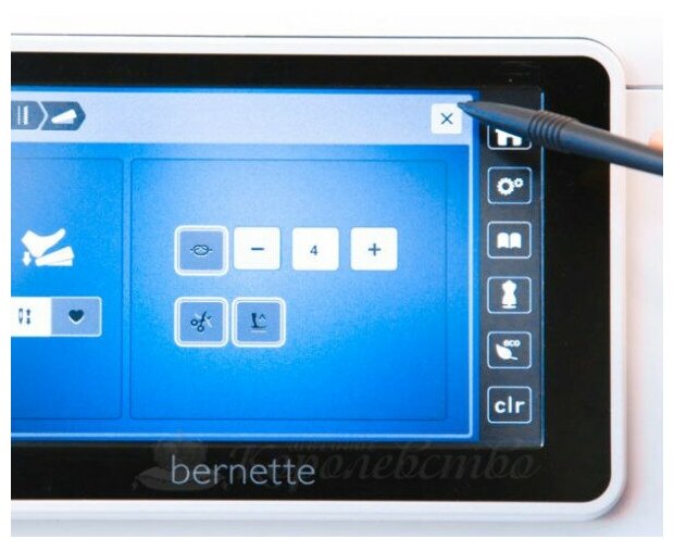 Hook: rotary vertical, power: 140 W, speed adjustment: smooth, display: touch color, PC control, USB port, maximum stitch length: 6 mm, maximum stitch width: 9 mm, maximum speed