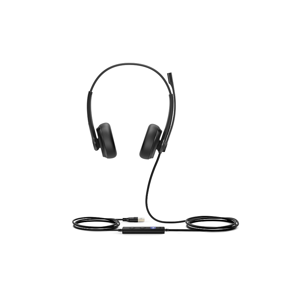 Wired headset, with two headphones, connector: USB, headphone type: on-ear, microphone attachment: on the boom, movable
