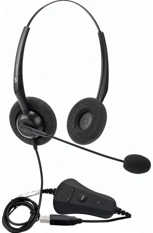 Wired headset, with two headphones, connector: USB, headphone type: on-ear, microphone attachment: on the boom, movable
