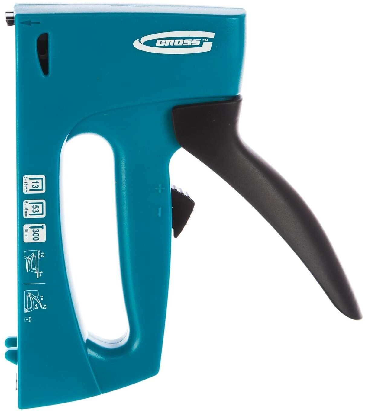 Power supply: mechanical, type of equipment: nails/staples, maximum staple length: 16 mm, maximum nail length: 16 mm, body material: plastic, features: impact force adjustment