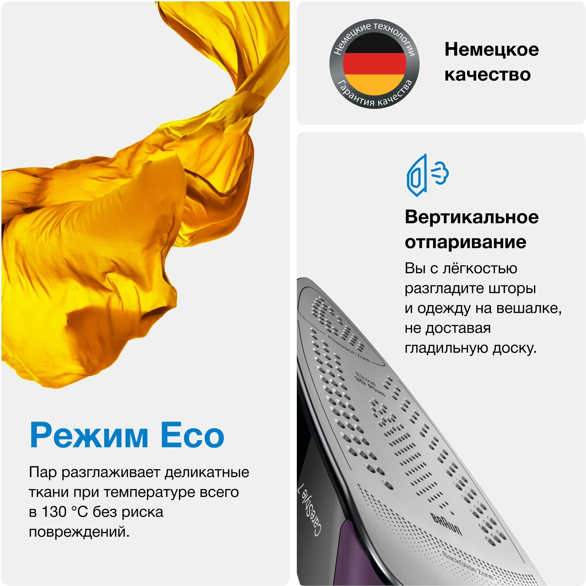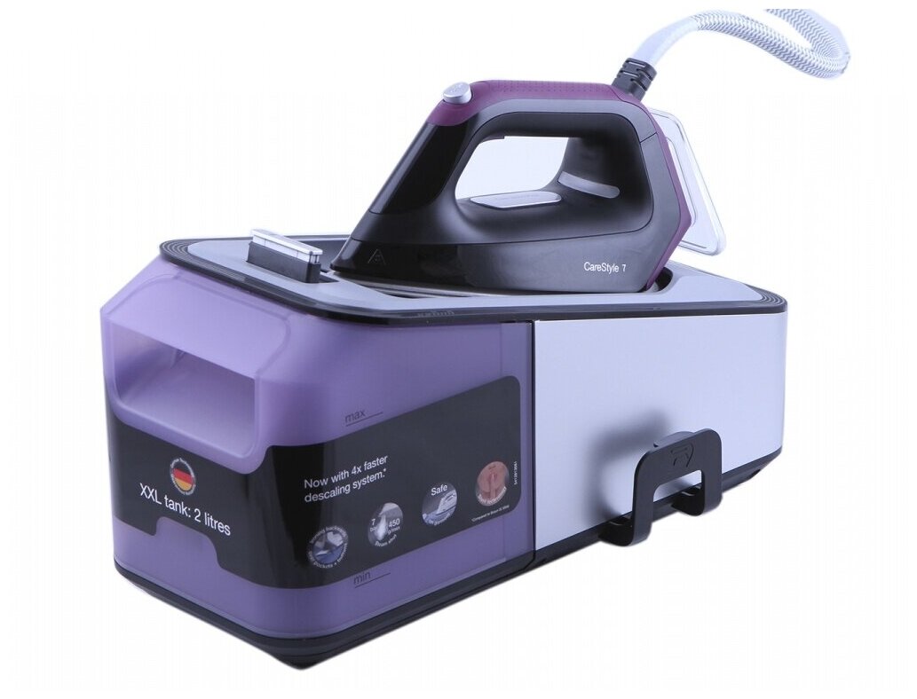 Maximum steam pressure: 7 bar, power: 2400 W, additional functions: anti-calc, steam boost, continuous steam, eco mode, vertical steam, automatic switch-off, soleplate material: aluminum