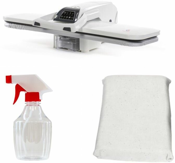 Equipment: ironing press, cover for the platform of the press, lining for ironing contour areas, water spray, branded bag