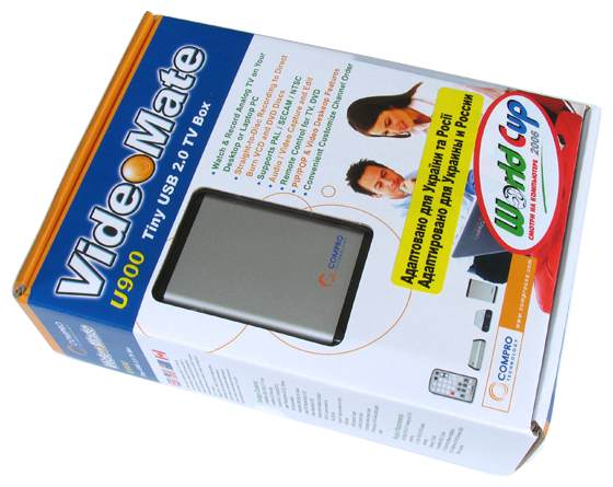 Tuner, remote control with batteries, USB 2.0 extension cable, I-type adapter for NTSC antenna input, F-type adapter for PAL/SECAM antenna input, USB power cable, S-Video and composite input adapters; audio cable, software CD, manual