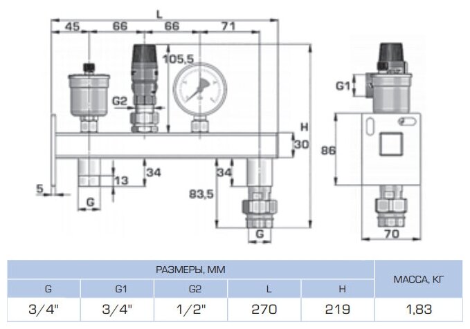 Type: for expansion tank, complete set: pressure gauge, material: brass, system connection thread diameter, inch: 3/4, maximum system working pressure: 3 bar