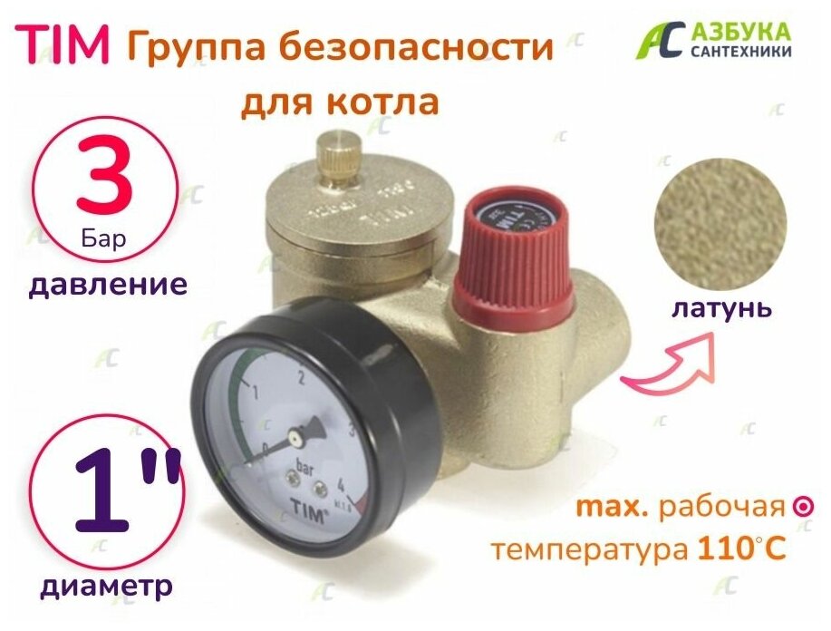 Type: for boiler, equipment: manometer, material: brass, system connection thread diameter, inch: 1, system connection thread type: internal, system maximum operating temperature: 110 °C, maximum working