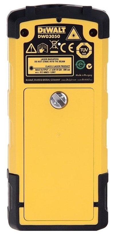 Type: laser, measuring range without reflector: 50 m, measuring accuracy: 1.50 mm, number of reference points: 2, number of stored measurements: 5, display backlight, auto-off, shock-resistant case, Pi function