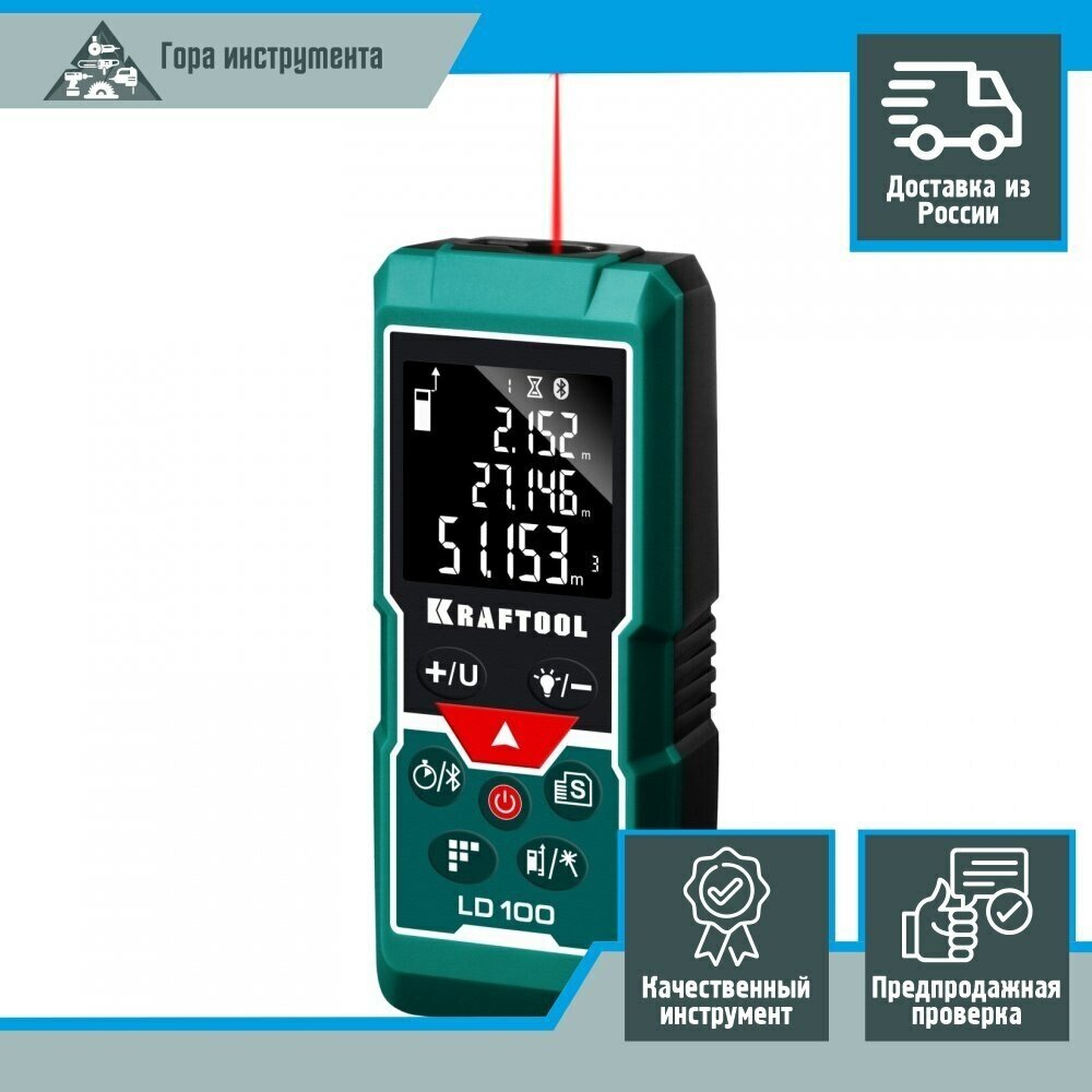 LD-100 laser, range 5 cm - 100 m, accuracy 1.5 mm, KRAFTOOL 34765