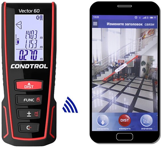 Type: laser, measurement range without reflector: 60 m, minimum measurement distance: 5 cm, measurement accuracy: 1.50 mm, number of reference points: 4, number of stored measurements: 30, display illumination, Function