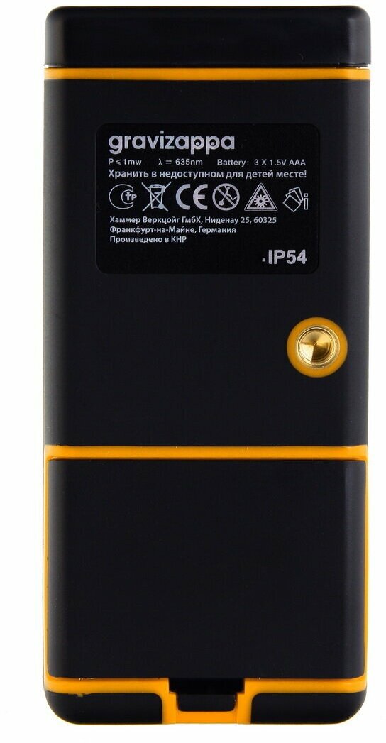 Type: laser, measurement range without reflector: 50 m, minimum measurement distance: 5 cm, measurement accuracy: 1.50 mm, number of reference points: 3, number of stored measurements: 10, display backlight, auto-off