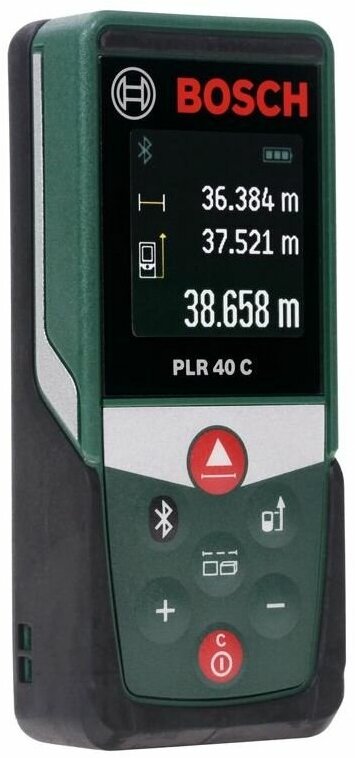 Type: laser, measuring range without reflector: 40 m, minimum measuring distance: 5 cm, measuring accuracy: 2 mm, number of reference points: 2, color display, display backlight, auto power off, layer function