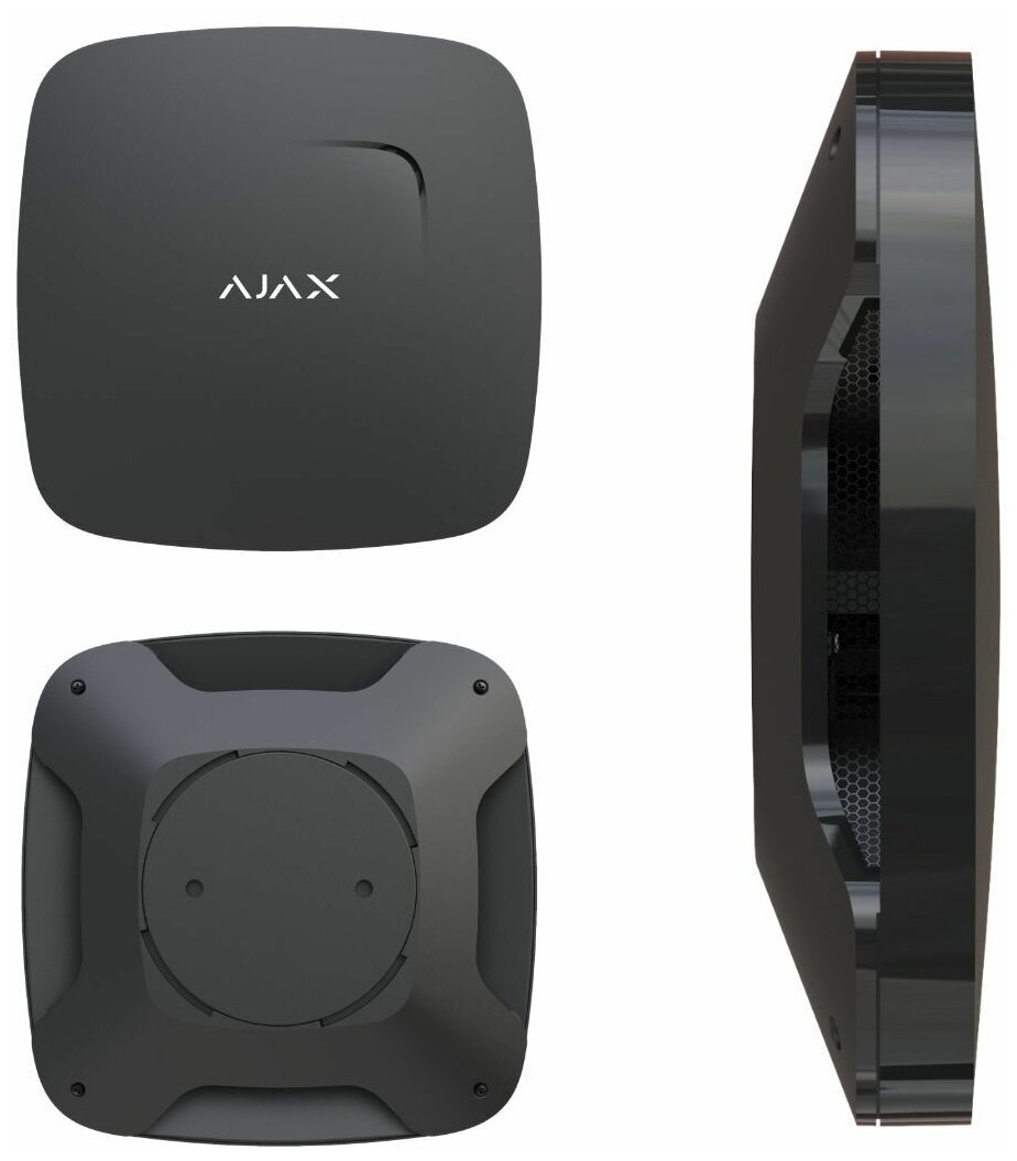 Detects the appearance of smoke, sudden changes in temperature and dangerous levels of CO; works standalone or with Ajax hubs, repeaters, ocBridge Plus, uartBridge; powered by 2 × CR2 main batteries, CR2032 backup battery, supplied