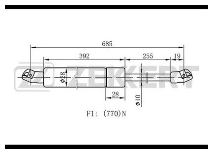 Gas spring, trunk lid ZEKKERT GF1023