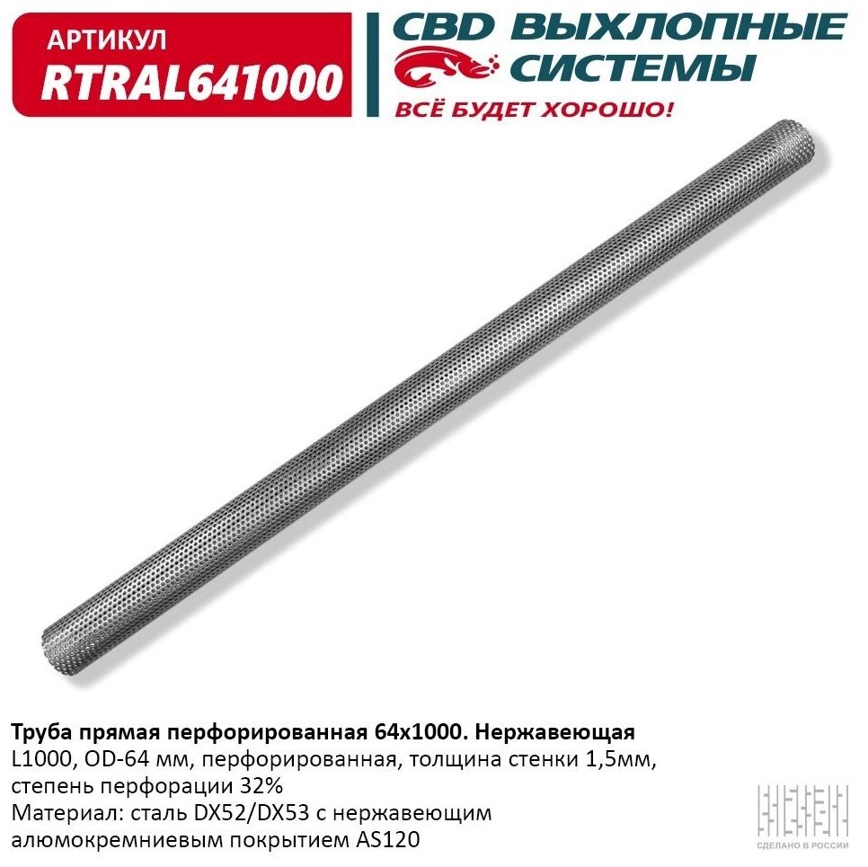 Pipe Straight Perforated 64*1000 D60, L1000 From Stainless Alyum Steel. cbd. RTRAL641000 CBD RTRAL641000